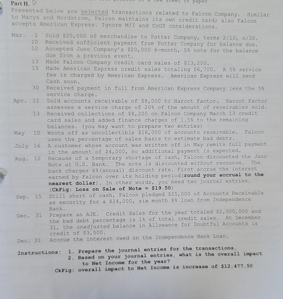 Solved Part H Of Paper Presented Below Are Selected Chegg Com